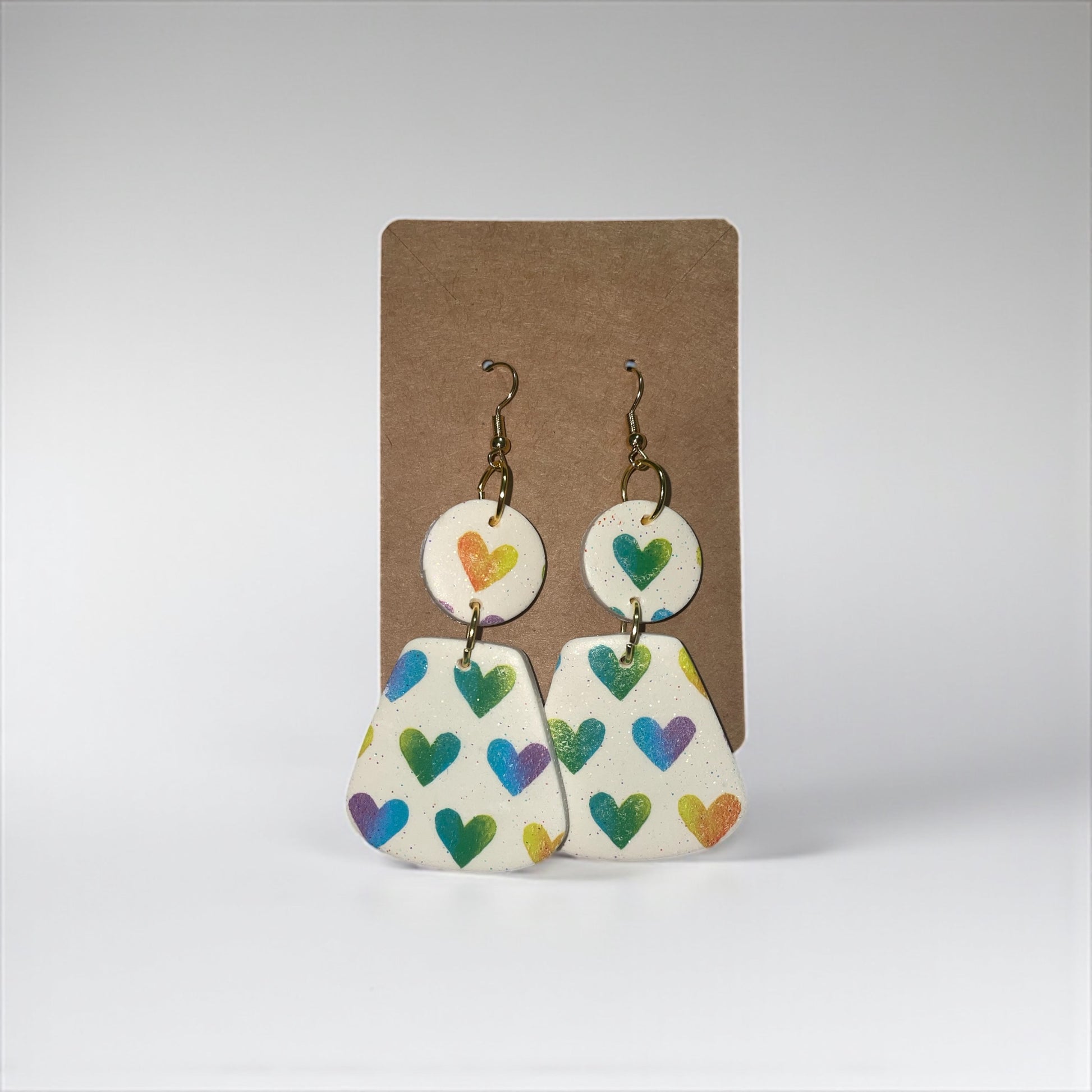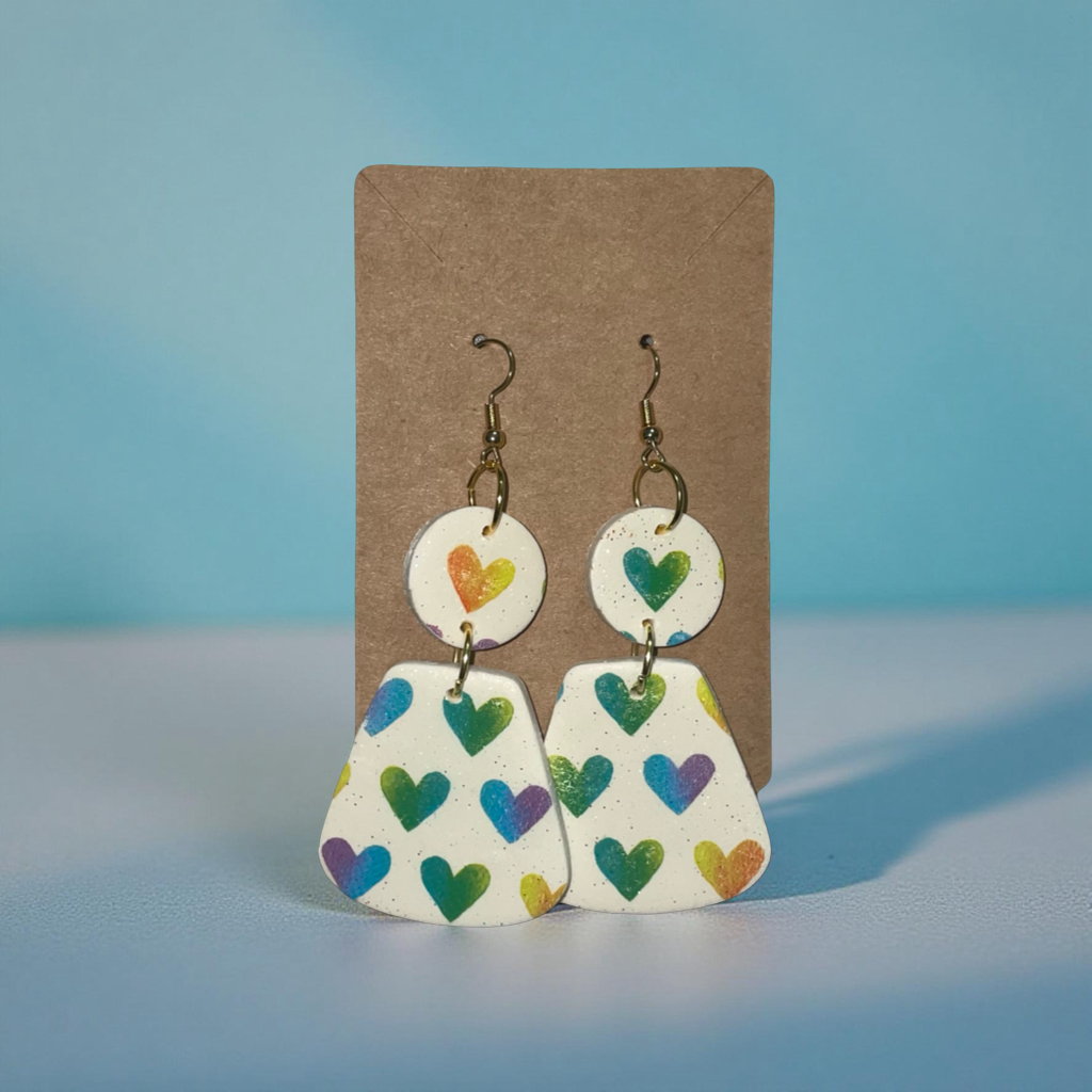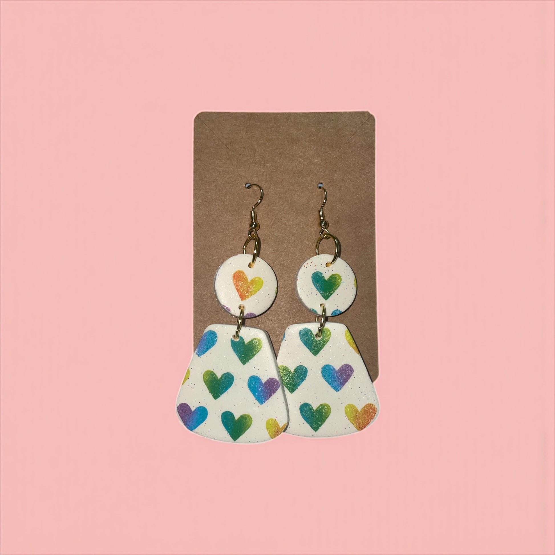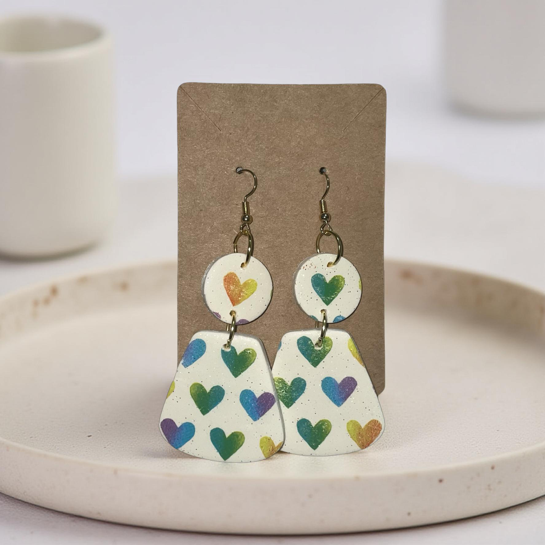 Handcrafted glitter clay heart earrings made with hypoallergenic materials for sensitive skin.