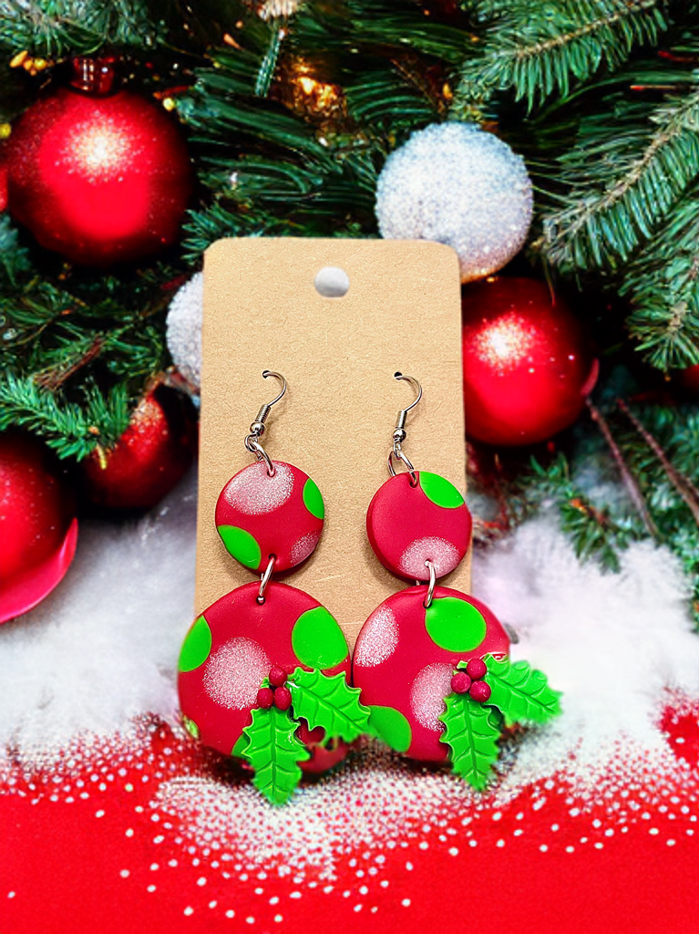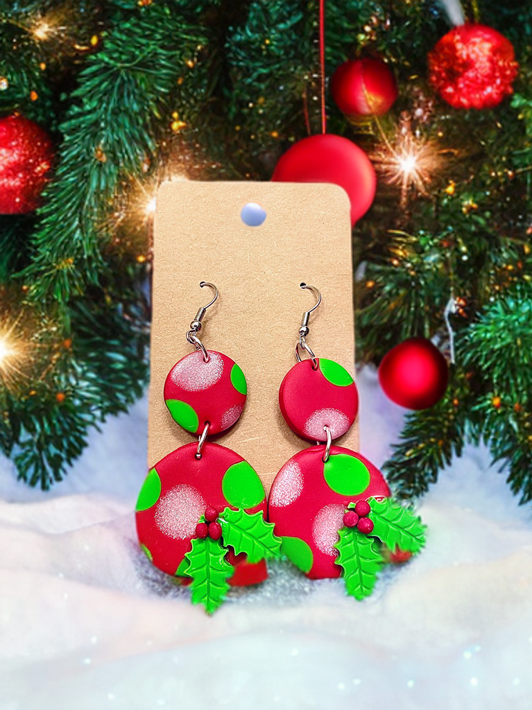 Holly Jolly Handcrafted Clay Earrings made with hypoallergenic metal perfect for sensitive skin.