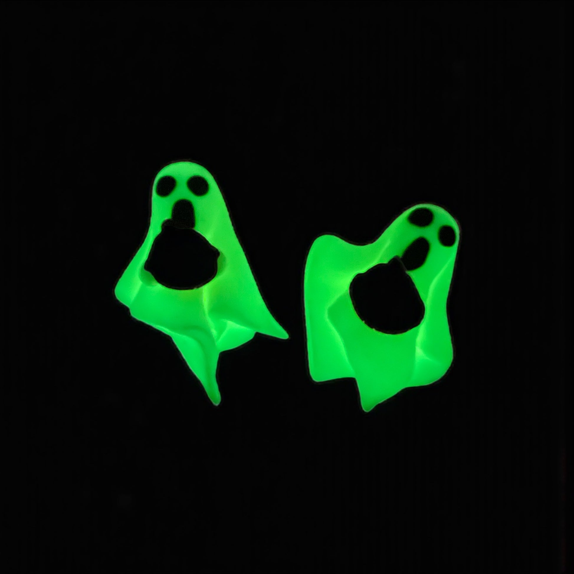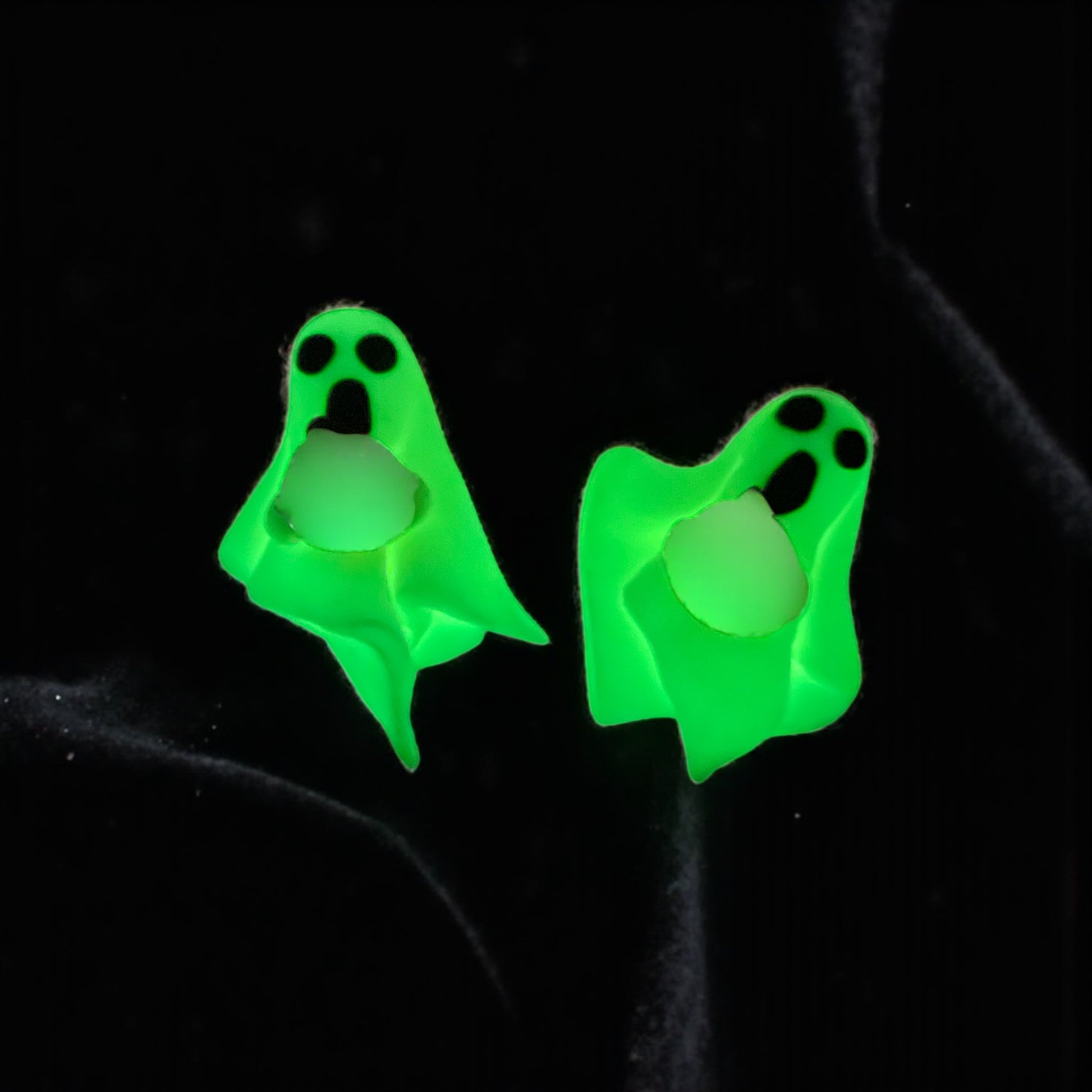 Handcrafted Glow In The Dark Spooky Ghost Clay Earrings, Made with hypoallergenic metal perfect for sensitive skin.